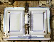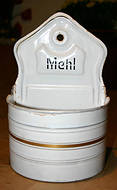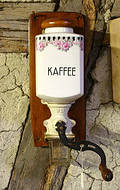 antike Wandkaffeemühle, Porzellan mit rosa Röschen,Verkauft!