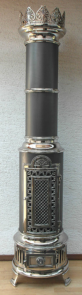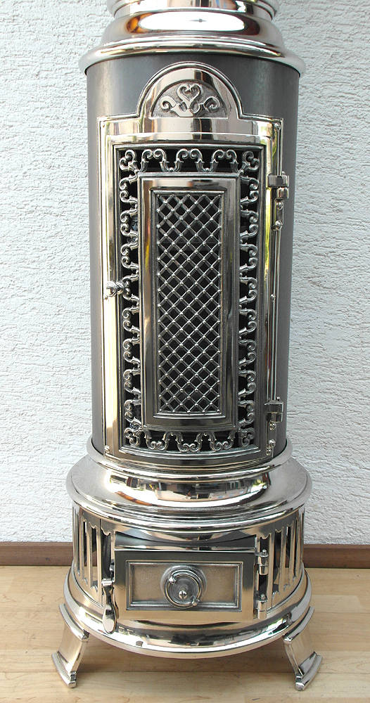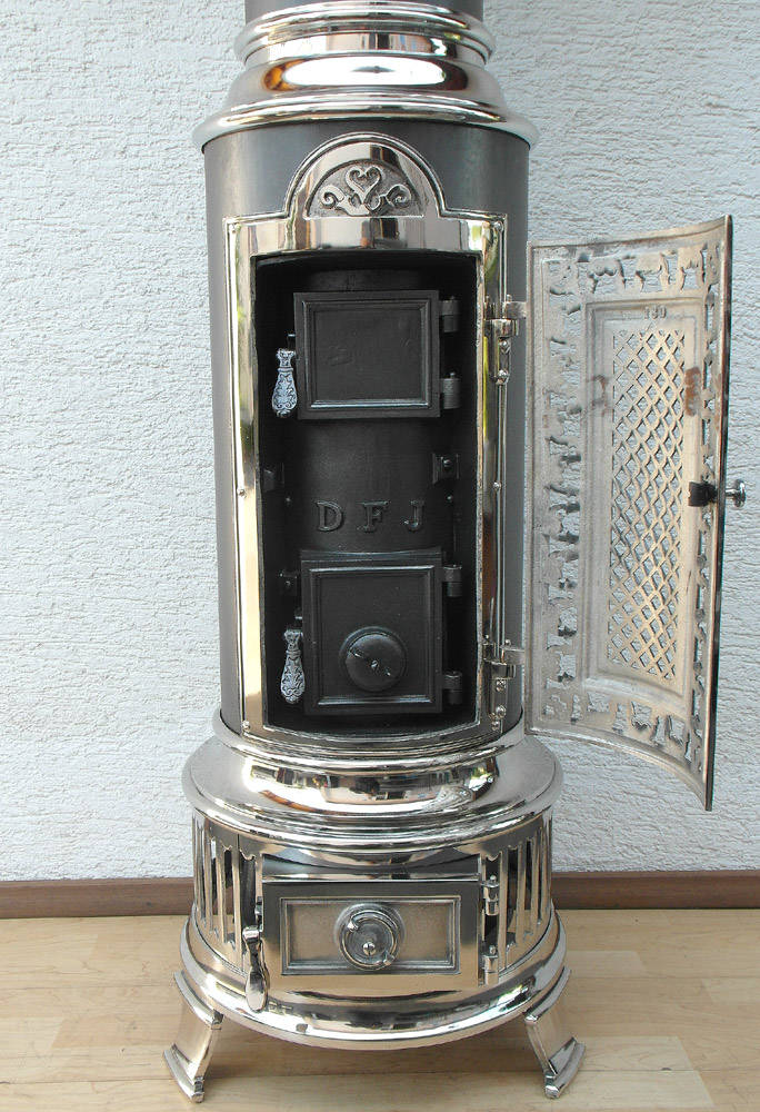 Dieser dänische Konvektionsofen D.F.J. mit seinen eleganten Vernickelungen wurde 1910 in Dänemark hergestellt.