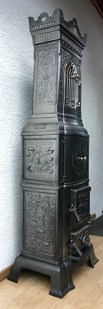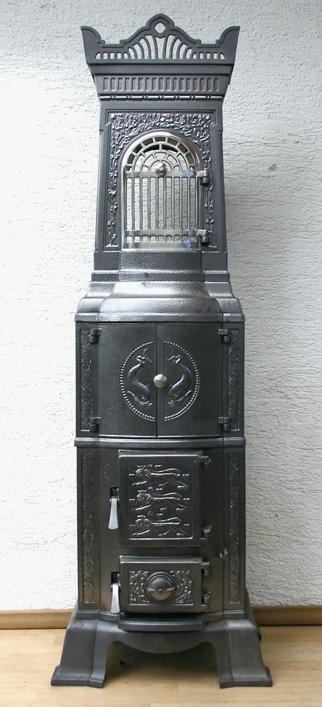 Mit seinen wunderschönen Verzierungen und der aufwendigen Krone ist der Ofen ein ganz besonders schönes Stück. Er besitzt ein Warmhalte- und ein Kochfach.