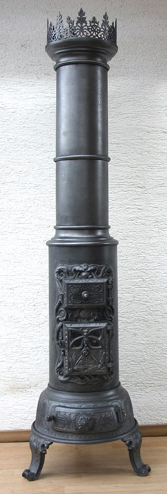 Der eleganter Säulenofen Jernstoberiet Goodthaab von 1910 besticht durch seine dezenten Verzierungen. Auch in modernem Ambiente kommt er gut zur Geltung.